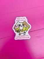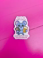 Sticker with relatable materialistic critter
